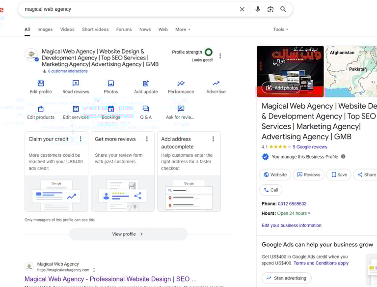 Magical Web Agency create & optimize your Google Business Profile to help you show up in local searches and on Google Maps. From setup to regular updates, we make sure your business looks professional, gets more visibility, and attracts nearby customers searching for your services.